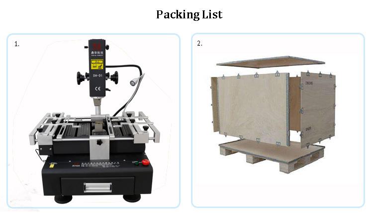 DH-D1 BGA rework-stasjon er den mest populære BGA-rework-stasjonen med berøringsskjermkontroll, 3 individuelle soner, 6 bunnvarmer med høydejusterbar, programmerbar topp / bunnoppvarming, 50X høyoppløselig kamerasystem, 3 termoelementer for sanntids profilering.